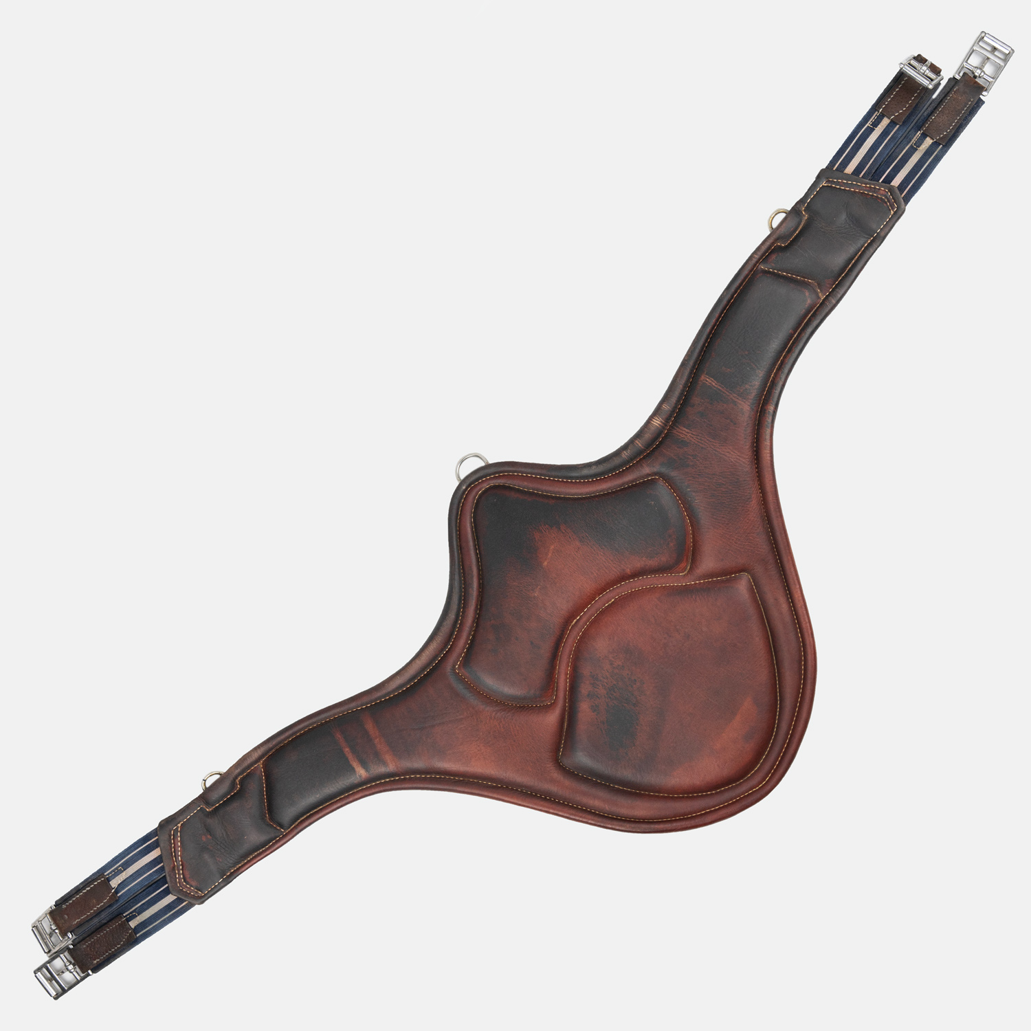 - Son apparence anatomique, plus large au centre, permet de mieux répartir la pression sur l'abdomen du cheval. La légère matelassure doublée veau va procurer plus de souplesse et de contact. Les deux anneaux latéraux permettent la bonne fixation des Enrênements. Elle compte également des élastiques latéraux pour faciliter le sanglage et apporter plus de confort au cheval.