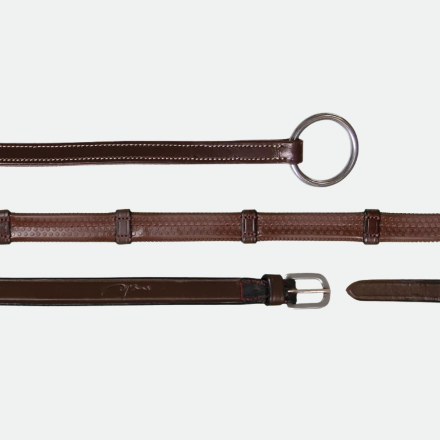 Dy’On – Rênes Caoutchouc 1/2 7 Arrêtoirs Fermeture à Anneaux Marron