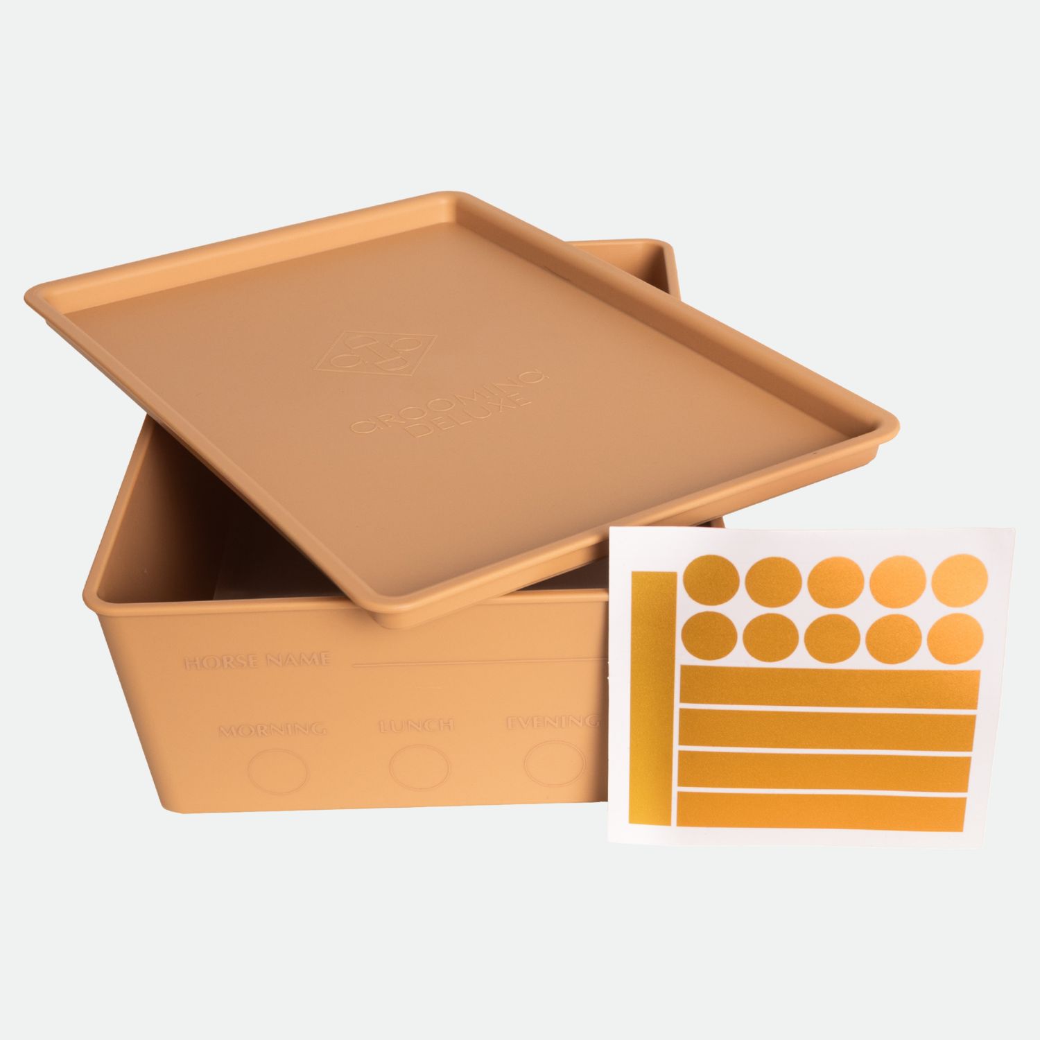Boîte à nourriture pour cheval Grooming Deluxe avec couvercle beige.