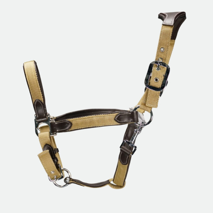 Le licol en nylon doublé cuir signé Flags&Cup dans sa version marron/cognac combine robustesse et élégance pour votre cheval. Conçu en nylon de qualité, il est entièrement doublé de cuir, ce qui lui confère une belle finition et un bon maintien. La têtière est anatomique et généreusement rembourrée pour limiter les pressions sur la nuque de votre monture. Deux boucles d’ajustage permettent un réglage précis, tandis que la muserolle, elle aussi doublée cuir, intègre une boucle de réglage. Un mousqueton à ouverture rapide sur la ganache assure une manipulation rapide et sécurisée.