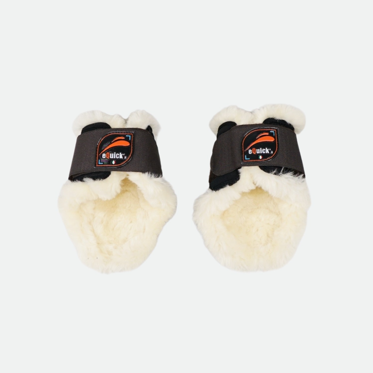 Protège-boulets eQuick eLight Fluffy conçus pour protéger les membres postérieurs du cheval tout en offrant confort et légèreté.