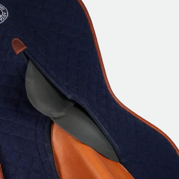 Le protège garrot de l'amortisseur Adjust Pad, en veau, épouse la forme du cheval et libère le garrot pour ne pas compresser ce dernier. La partie supérieure en laine naturelle surpiquée lui apporte une excellente résistance à l'usure et aux déchirures. Elle protège aussi le cuir de la selle de la sueur du cheval.