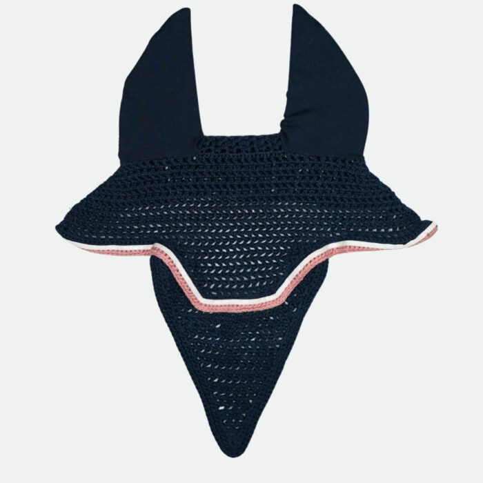 - Bonnet pour chevaux base marine, contour rose agrémenté d'un petit galon en simili blanc