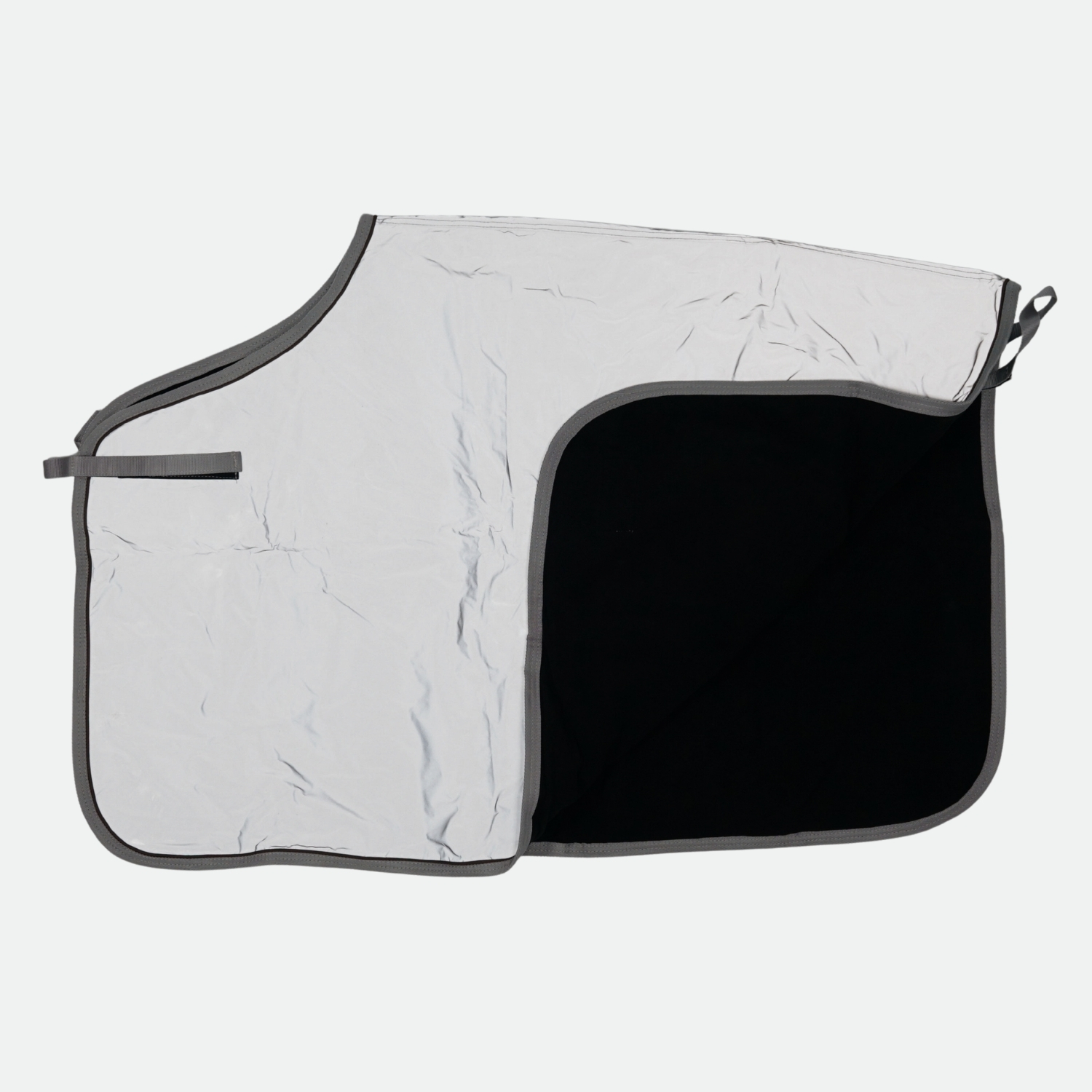 Le couvre-reins est fait de notre tissu hautement réfléchissant, ce qui permet de s'assurer qu'il soit vu dans l'obscurité. Le matériau réfléchissant est hydrofuge pour que le cheval reste au sec. La couverture est doublée d'une polaire douce à l'intérieur, ce qui la rend confortable à porter