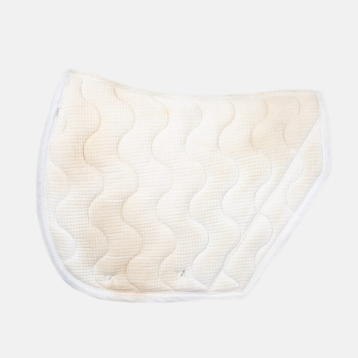 139,75 €- Tapis de selle forme sport fabriqué en France doublé en coton nid d'abeille. Le motif est en forme de vague à la verticale.